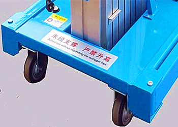 整體采用高強度鋁型材精制而成,升降平穩(wěn)適合單人或雙人高空作業(yè),三柱鋁合金升降機動力分為220V、 380V,或電瓶動力源,特殊環(huán)境也可采用防爆泵站及防爆電器。其特點:整機重量輕,機動性好,適合單人操作;特制的桅柱間導輪裝置,升降平穩(wěn)自如;結(jié)構(gòu)緊湊,運輸狀態(tài)尺寸小,可進入一般電梯的轎廂以及能順利通過門洞和狹小通道;雙重保護的支腿結(jié)構(gòu),工作更安全,且可貼近工作面升降作業(yè);根據(jù)使用場所高的要求,可做成電動放倒式升降平臺。以滿足門口比較低時使升降平臺無法進入的情況。該系列產(chǎn)品多為室內(nèi)型,廣泛適用于星級酒店、大型超市等各行業(yè)大廳、廠房內(nèi)的高空作業(yè),如機具保養(yǎng)、油漆裝修、調(diào)換燈具、清潔保養(yǎng)等。