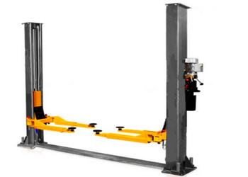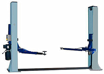 雙柱式舉升機屬于一種特殊液壓升降機,有對稱式和非對稱式兩種。對稱式舉升機四根臂的臂長大致相等,這樣使得汽車中心(或質(zhì)心)處于立柱的中間位置,對于皮卡和箱式貨車等類型的汽車的日常維修來說這種對稱式舉升機可能是很好的選擇。但是對于一些柱間寬度不夠大的對稱式雙柱式舉升機來說,汽車舉升后不能打開車門是一個很大的缺點。非對稱式舉升機的立柱向后旋轉(zhuǎn)了一個角度(大約30°),并且前臂比后臂稍微短一些。當把汽車停放到這種非對稱式的舉升機適當位置時,車的位置就向后移動了一些,因此,我們就很容易地從車門進出。而且,這種非對稱式舉升機轉(zhuǎn)動的立柱,可以確保車輛的重心安全地定位在立柱之間。