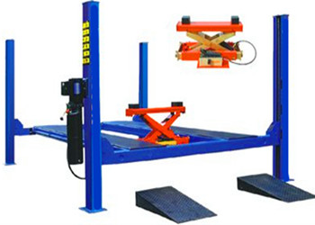 地上式舉升機(jī)無(wú)需挖槽,適用于任何修理廠,有一些樓板上不適合安裝二柱舉升機(jī)以及普通四柱舉升機(jī),而本機(jī)器與樓板接觸面廣,這樣可以安裝在任何可以開(kāi)車(chē)的樓板上面,解決客戶(hù)場(chǎng)地問(wèn)題。剪式舉升機(jī)比兩柱和四柱舉升機(jī)極大的好處是不占用空間,方便使用,不足之處則是補(bǔ)油平衡要求很?chē)?yán)格,而且需配備控制箱,造價(jià)較貴。