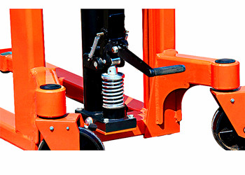 門架采用優(yōu)質(zhì)型鋼焊接而成,剛性好、強度高。后輪使用帶剎車裝置的萬向輪,可自由旋轉(zhuǎn)、轉(zhuǎn)動輕便靈活,前后輪均以滾珠軸承安裝于輪軸上,轉(zhuǎn)動靈活。車輪為尼龍輪,耐磨、耐用,且不易損壞工作地面。手動液壓堆垛車